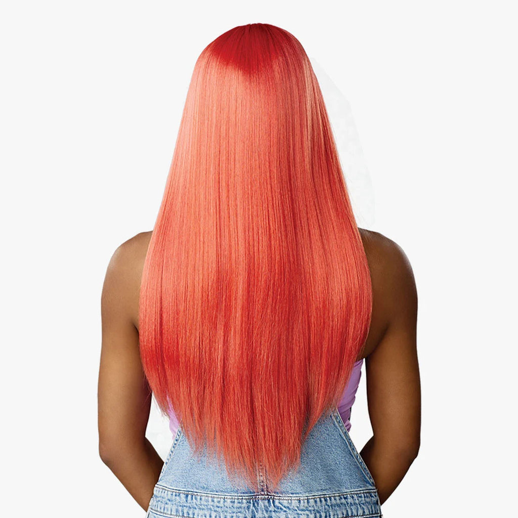 Shown Color: ROSE GOLD COPPER Deeper Curved C-Part, More Voluminous Bangs Natural Destiny Hairline, Blends With Most Skin-Tones Ear to Ear Lace With a Wide 5" Deep Hand-Tied Parting Area Pre-Plucked With Baby Hair Along the Hairline