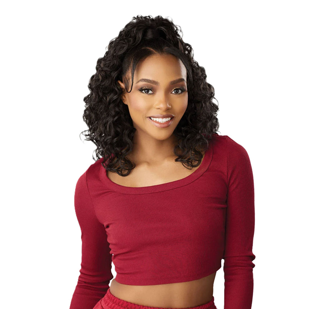 Shown Color: 1B 4 possible styles with 1 pack: Half wig, Up-do, Pony wrap, Half-up, half-down Quick, simple, and easy to style unit for all year long, regardless of the weather Fun, versatile hairstyle that is styled up and down.